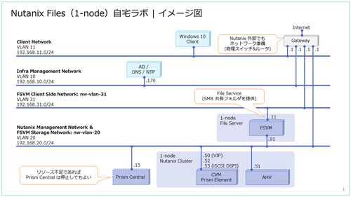 Nutanix CE に、Nutanix Files を展開してみます。まず、前提となるインフラと、Nutanix クラスタを準備します。 今回の内容です。 環境について ソフトウェアなど ネットワーク Nutanix Files のストレージ ネットワーク Nutanix Files のクライアント サイ…