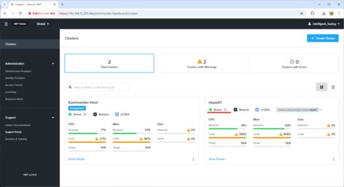 Nutanix Kubernetes Platform(NKP)v2.12 の Management Cluster のダッシュボードから、Kubernetes クラスタ(Managed Cluster / Workload Cluster)を作成してみます。 今回の環境 Workload Cluster の作成 作成したクラスタへの接続