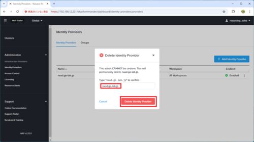Nutanix Kubernetes Platform(NKP)v2.12 の LDAP ID Provider 設定を解除してみます。 今回の内容です。 今回の環境 1. ロール割り当て(Cluster Role Bindings)の削除 2. NKP グループの削除 3. Identity Provider の削除 4. ログイン画面の確認