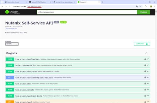 Nutanix Self-Service API のリファレンスを、Swagger の JSON ファイルをもとにローカルで確認してみます。 今回の内容です。 Nutanix Self-Service API Swagger JSON の入手 Swagger UI での API Explorer 起動(Podman) コンテナの停止