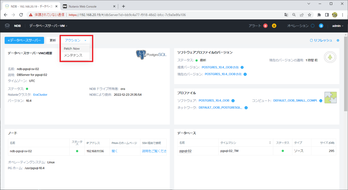 Nutanix Database Service(NDB)には、DB サーバ VM の OS パッチ適用機能で、PostgreSQL DB サーバ VM をアップデートしてみます。
