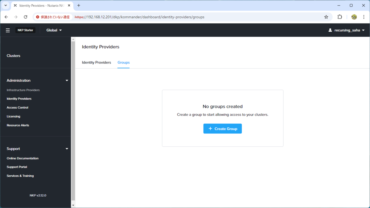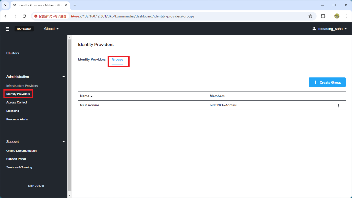 これで、NKP のグループからロールが解除されました。このあと、グループは Identity Providers 画面から削除します。