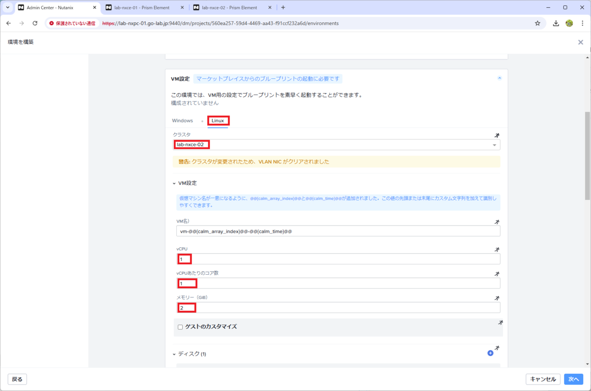 - クラスタ:lab-nxce-02