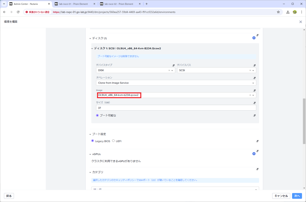 プロジェクトに「環境」を追加する際に、ひとまずの OS ディスク イメージを選択することになります。そこで、Prism Central からイメージ サービスにディスク イメージを登録しておきます。